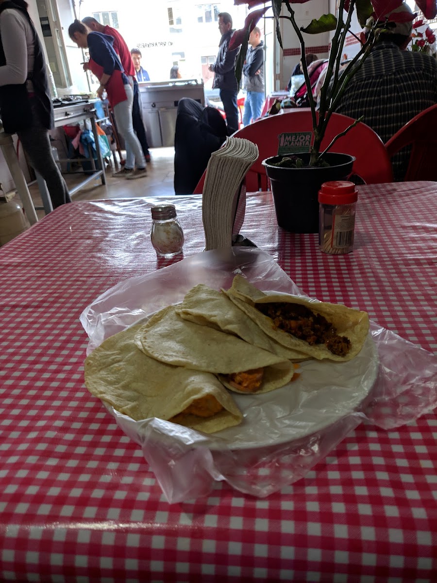 Son unos tacos riquísimos y bien surtidos. La tortilla es a mano y la variedad de guisados ofrece muchas alternativas para cualquier gusto. El servicio es rápido. Son uno de los tacos mas conocidos de la ciudad y su fama es respaldada por tanto años de trayectoria. Lo malo es que no tienen baño